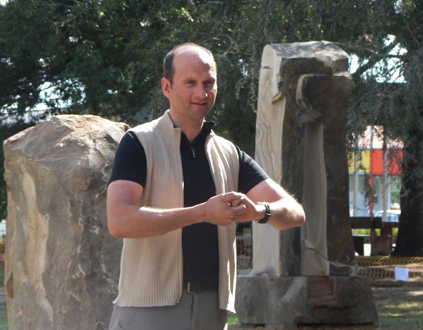 Thomas ReifferschildThomas Reiffercheid from Germany is a regular visitor to the Scenic Rim since he participated in BADCAP’s first Sculpture Sypmposium. His piece is called Balance and Thomas chose a 4.5 ton piece of Ablatyo Helidon Sand Stone.(Germany)